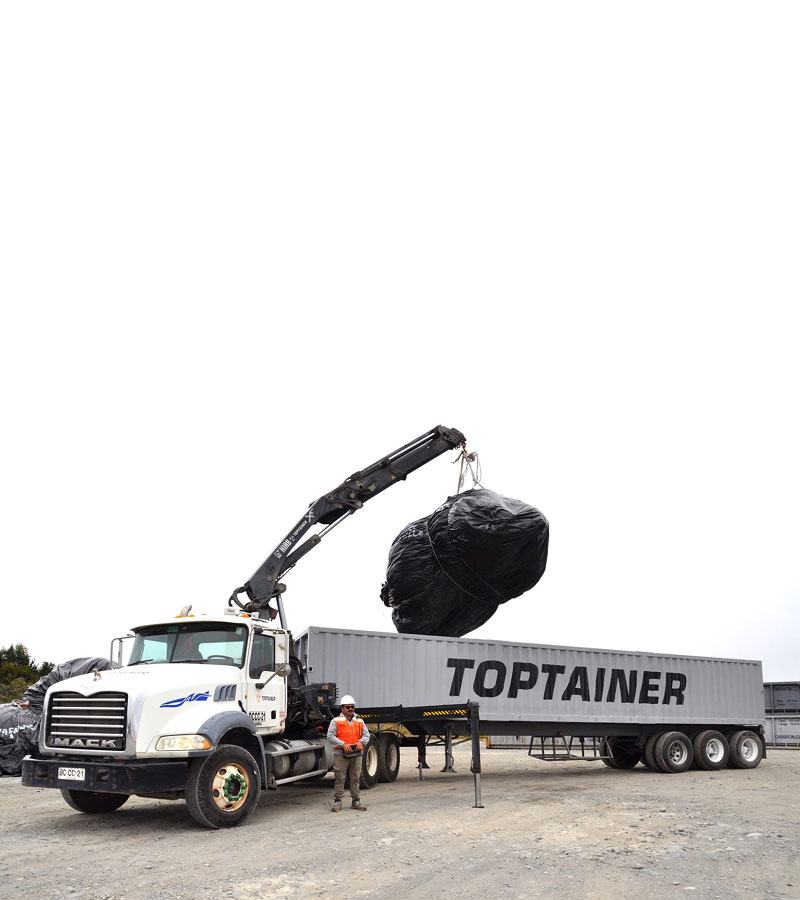 TOPTAINER nace con el sueño de transformarse en un actor importante de la logística del sur de Chile; prueba de ello es que, desde el día uno, el isotipo de nuestro logo quiso representar la rueda de un camión, la hélice de un barco y la turbina de un avión, los principales medios de transporte de carga.